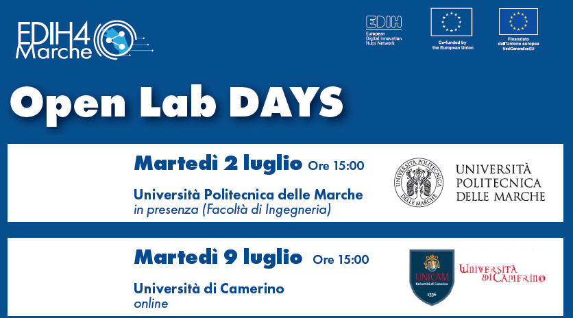 Edih4Marche ha organizzato un duplice evento in cui le Università partner del progetto - Università Politecnica delle Marche e Università degli Studi di Camerino - apriranno i loro laboratori.