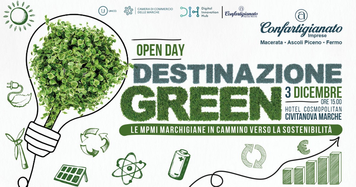 Confartigianato e DIH Marche organizzano l’evento Destinazione Green, l’open day dedicato alla transizione ecologica, le strategie di sviluppo e le opportunità per le imprese marchigiane, che si terrà venerdì 3 dicembre alle ore 15 presso il Cosmopolitan Hotel di Civitanova Marche.