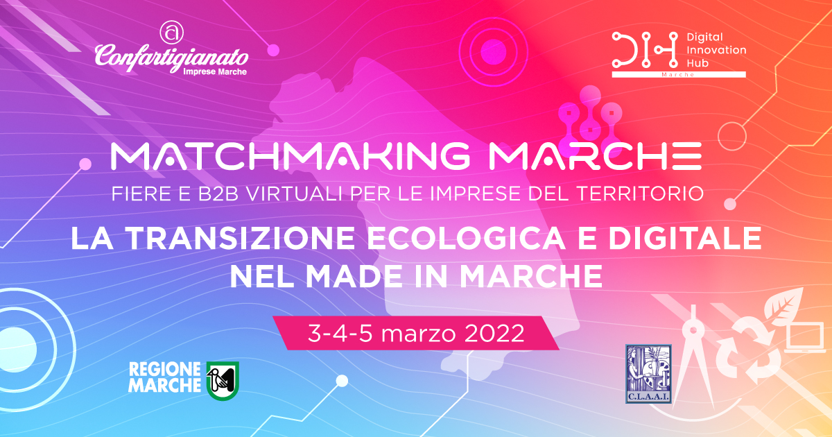 Sarà dedicata al Made in Italy Marchigiano, in particolare alla creazione e valorizzazione della Filiera della Transizione Digitale ed Ecologica e della Sostenibilità nei settori Fashion, Legno e Arredo, Design, Metalmeccanica e Artigianato Artistico la seconda fiera virtuale organizzata nell'ambito di “Matchmaking Marche”, evento creato dal Digital Innovation Hub di Confartigianato Marche.
