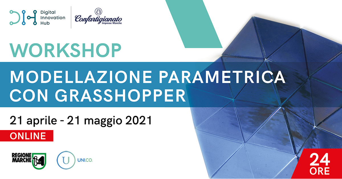 Il corso, che si svilupperà con lezioni online di 3 o 6 ore, per un totale di 24 ore. Il corso verterà sui seguenti concetti: MUDULO _01: modellazione parametrica - Introduzione e concetti base; - Interfaccia di Grasshopper; - Parametrizzazione di un modello. 2/ MUDULO_02: gestione dati - Data flow (data tree structure); - Manipolazione dei dati in GH, liste, sequenze numeriche, funzioni matematiche e logiche, condizioni, attrattori; - Creazione e modifica di superfici 3D in ambiente GH. - Utilizzo di immagini e geometrie attrattrici per la generazione di pattern complessi; 3/ MODULO_03 (6 ore): add-ons - Pannelizzazione superfici con LunchBox; - Simulazioni fisiche con Kangaroo; - Algoritmi di “smoothness“ (Weaverbird); - Geometrie frattali (HoopSnake e/o Anemone); - Galapagos: teoria evolutiva e sua applicazione per la risoluzione di problemi geometrici complessi